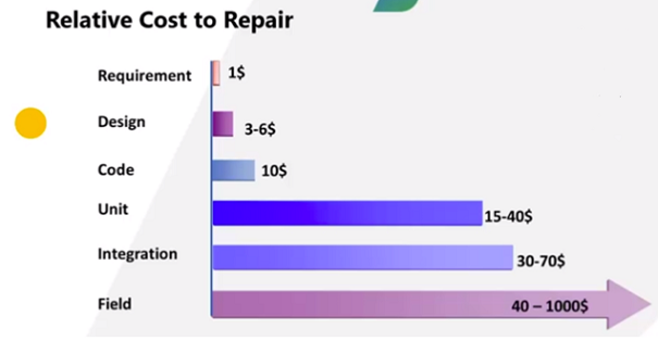 Je früher in der Entwicklungsphase ein Fehler durch das Testen entdeckt wird, desto geringer sind die Kosten für die Fehlerbehebung.